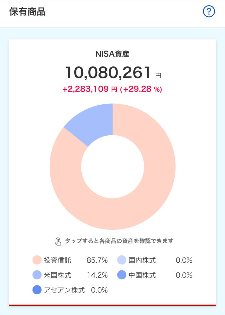 つみたてNISA(〜2023)、NISAつみたて投資枠、NISA成長投資枠で運用しています。新NISAは制度開始時点から利用しています。