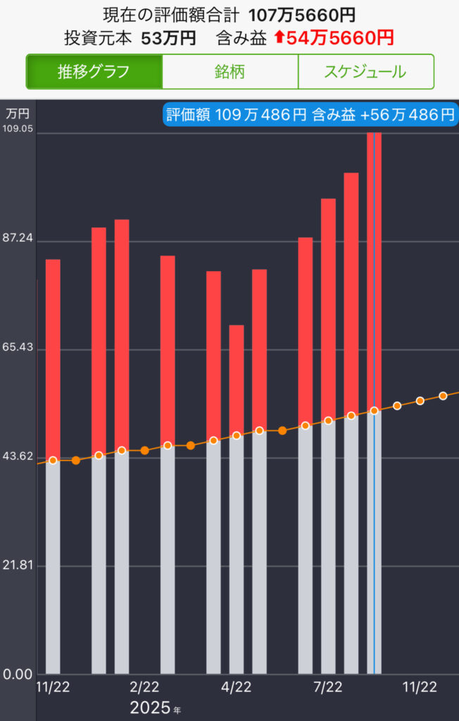 過去最高値、元本から2倍になりました!2022年からコツコツ買っていたので嬉しかったです!