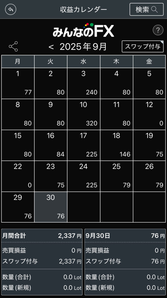今月のスワップは2,337円でした。